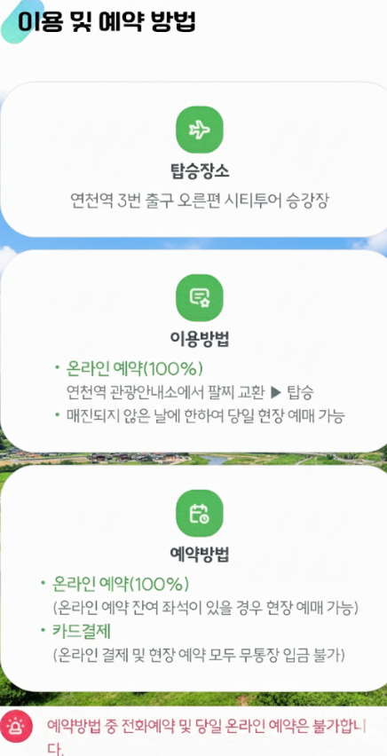 예약방법: 네이버 ‘연천시티투어’ 100% 온라인 사전예약 (전화·당일 예약 불가)