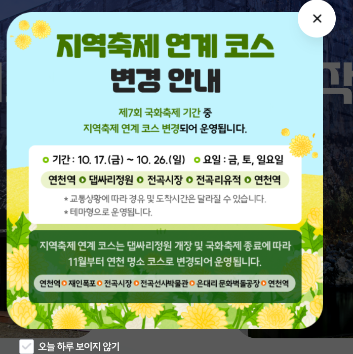 연천 시티투어 버스는 주말의 경우, 지역축제연계코스로 운영되기 때문에 한 번에 연천의 대표 명소들을 둘러볼 수 있는 장점이 있습니다. 이 글에서는 제가 직접 정리해 본 연천시티투어 지역축제연계코스 정보를 알려드립니다.